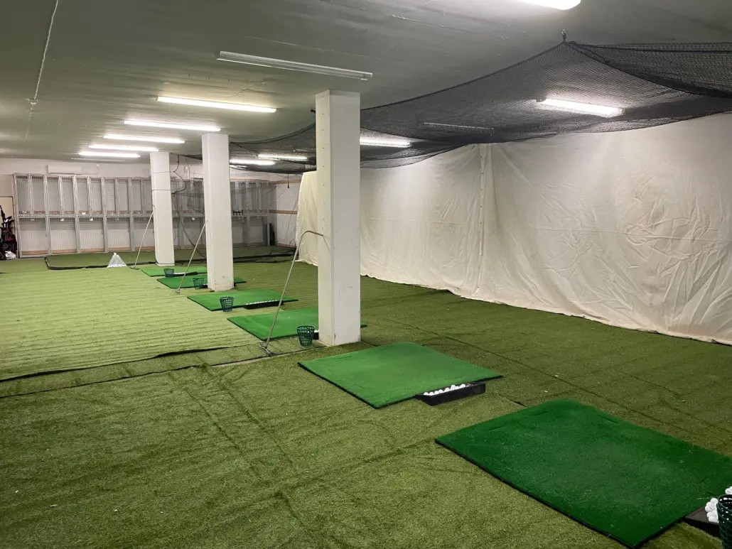 Nu är vår slaghall redo för träning. Vi har 6 mattor plus en mindre puttinggreen.