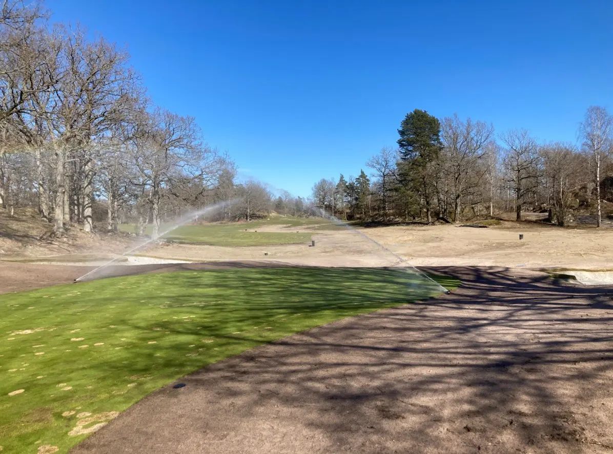Det har varit en utmanande start på säsongen i år, med organiseringen av den nya banlayouten i kombination med att det är den mest hektiska månaden på året, och vi börjar nu återgå till normalt banunderhåll.  Vi har I stort sett samma personal tillbaka inför den nya säsongen, vilket hjälpt oss avsevärt till att få allt klart. De få soliga dagarna har redan bidragit till att göra banan grönare, men vi har upplevt de vanliga kalla nätterna med frost som hindrar oss från att utföra vissa uppgifter på morgnarna.