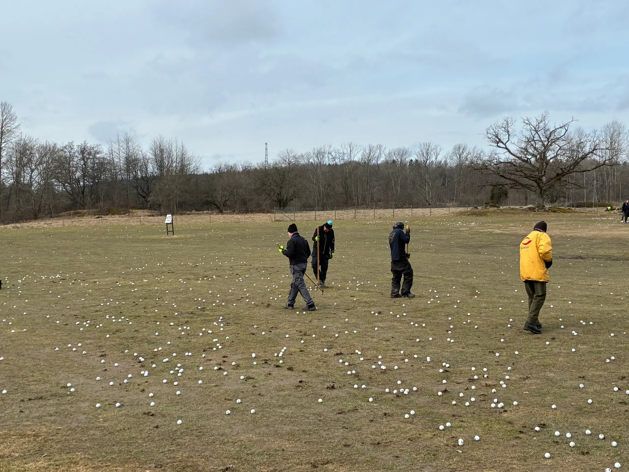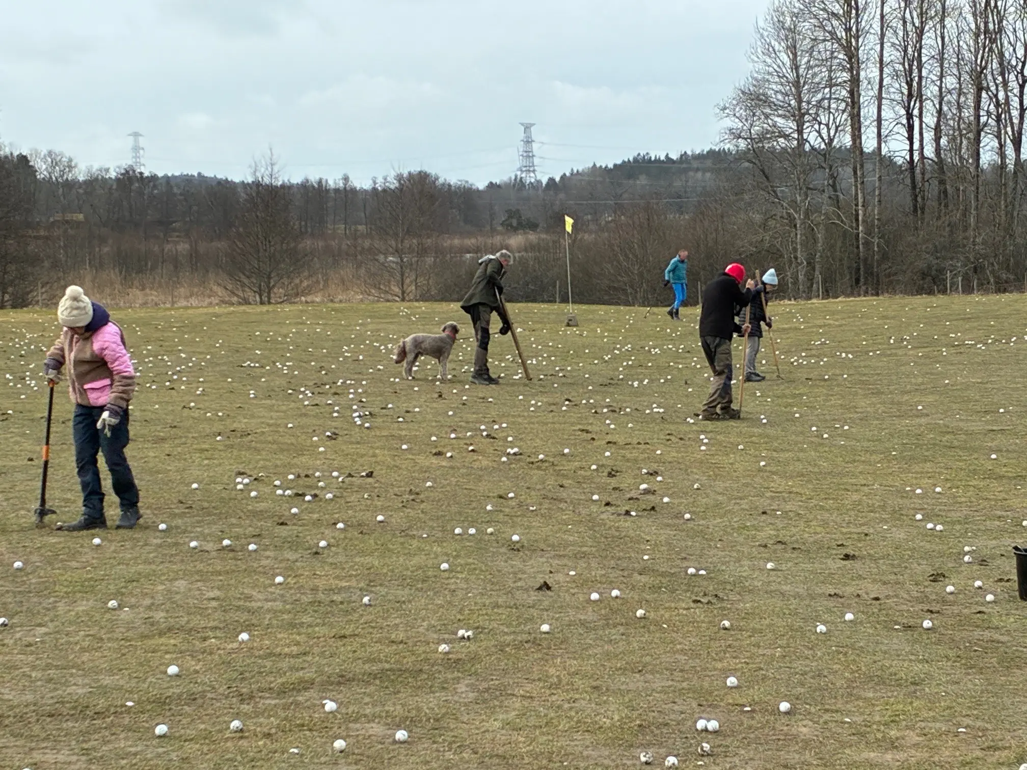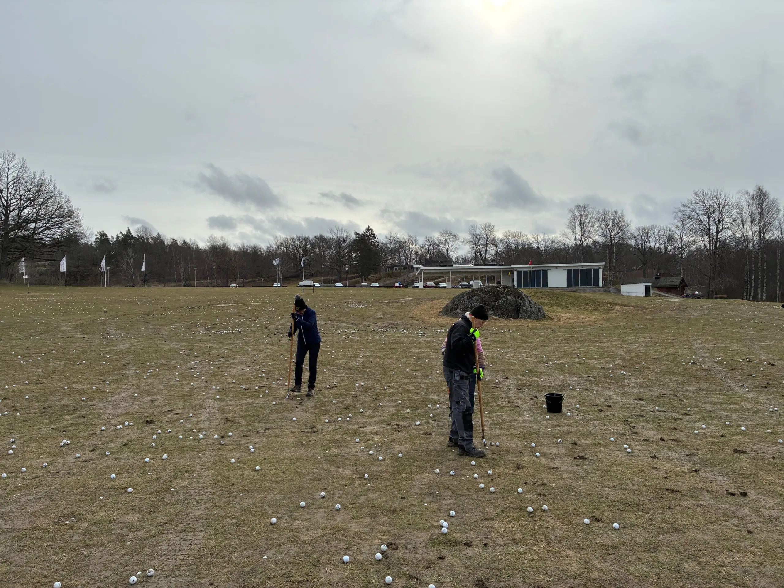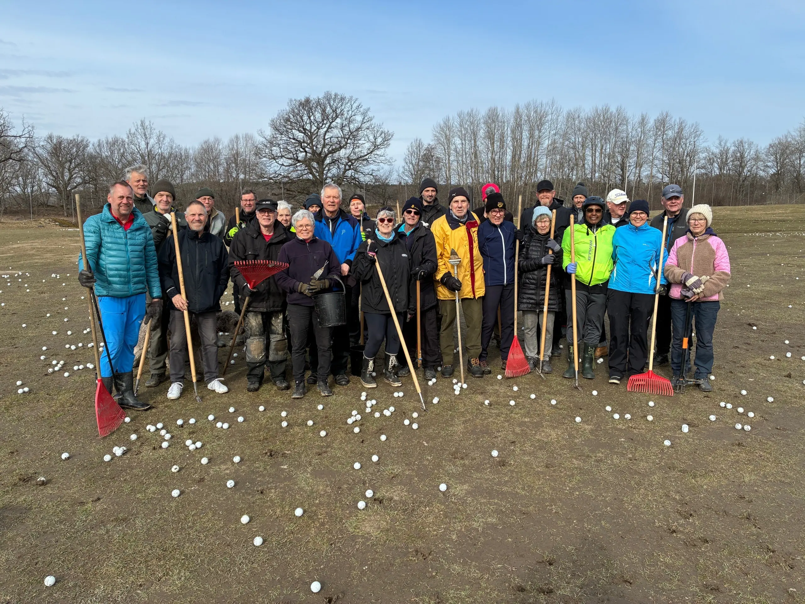 Frivilliggruppen ställda som vanligt upp med ca 25 arbetsvilliga personer som under 2 timmar slet med att ta upp pluggade bollar och även återfann bollar bakom drivingrangestaketet.