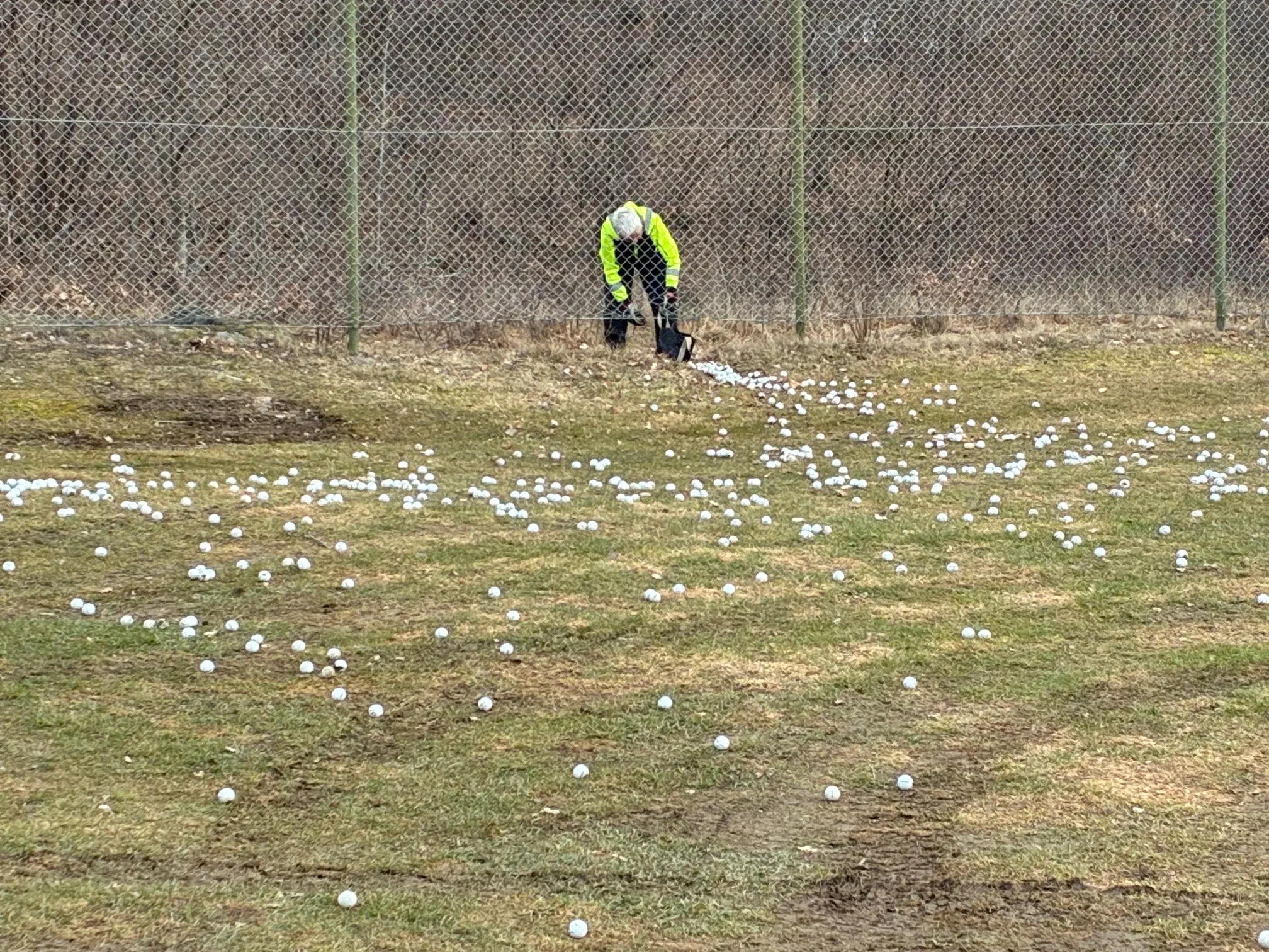 Efter hösten och vårens övande på vår drivingrange fanns det nu en enorm mängd pluggade bollar och även massor med bollar som flugit över staketet.