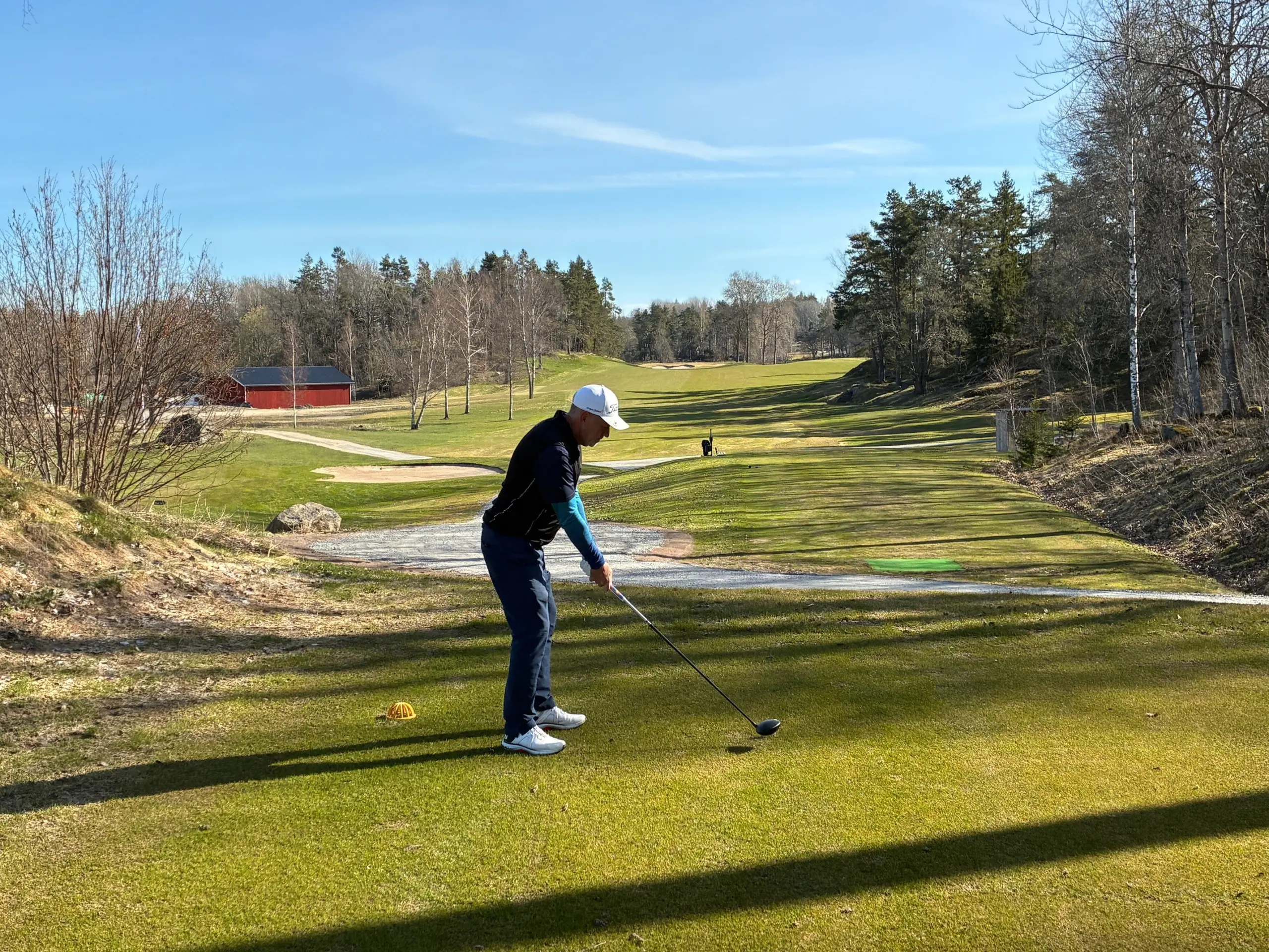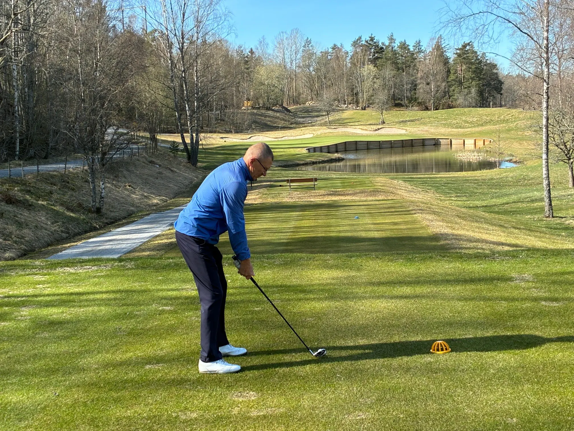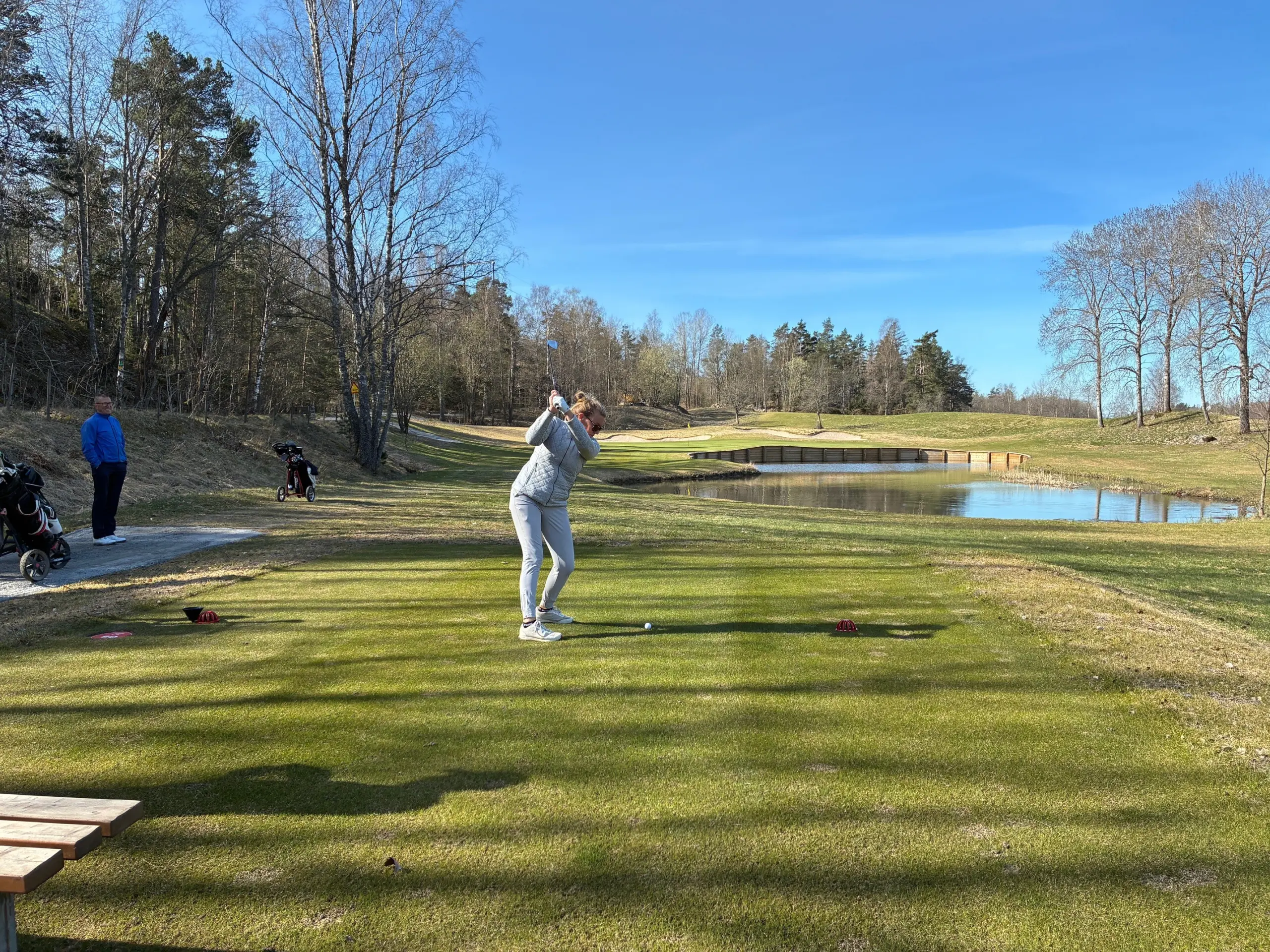 På hål 5 fick vi, av skattmästare Allan Stahl, se årets första birdie efter ett utslag endast 1 meter från flaggan. Vi fick även uppleva årets första boll i dammen. Det lär bli fler på hål 5.